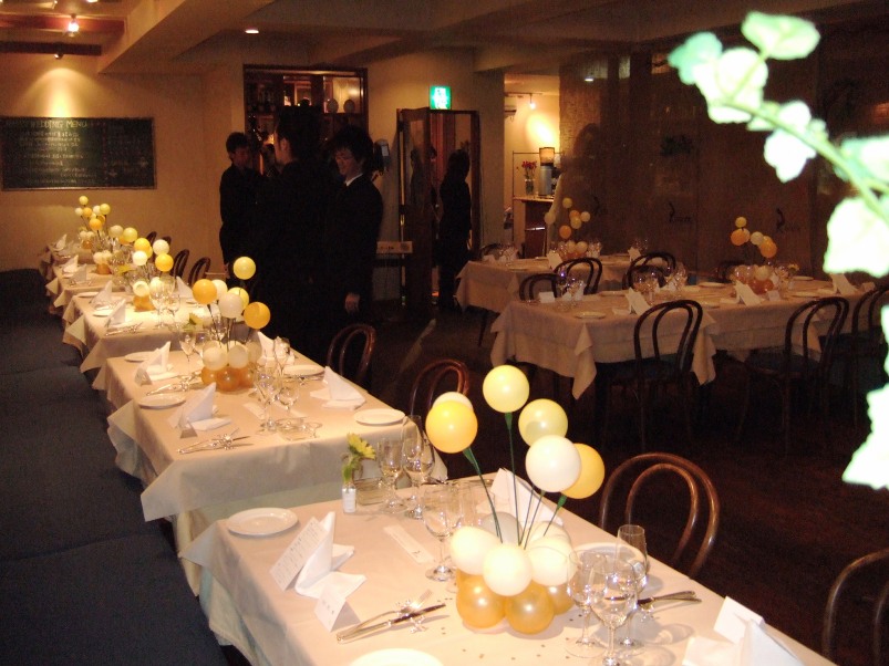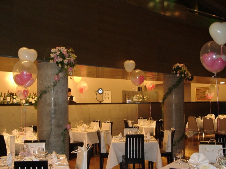 | イタリアンレストランにて | テーブルデザイン | 照明のあたたかさに合う バルーンで空間に調和を | あふれる喜びを バルーンにこめて |